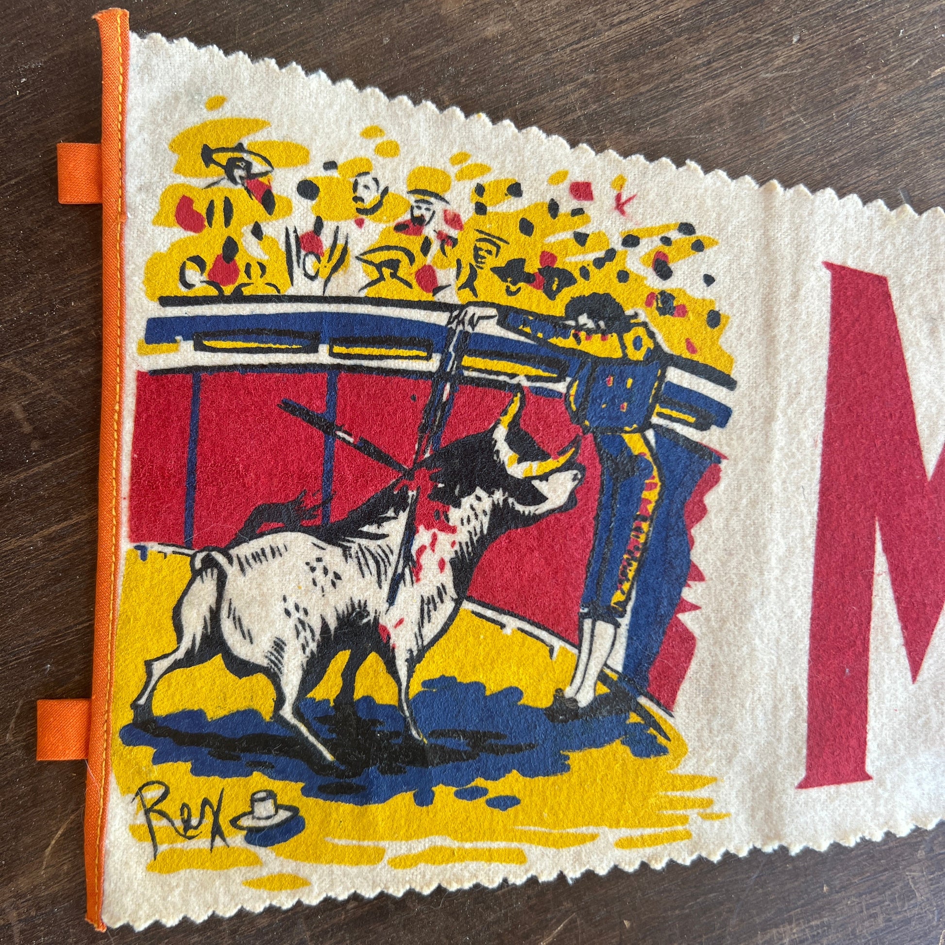1970's vintage Matamoros, Mexico bull fighting felt pennant flag