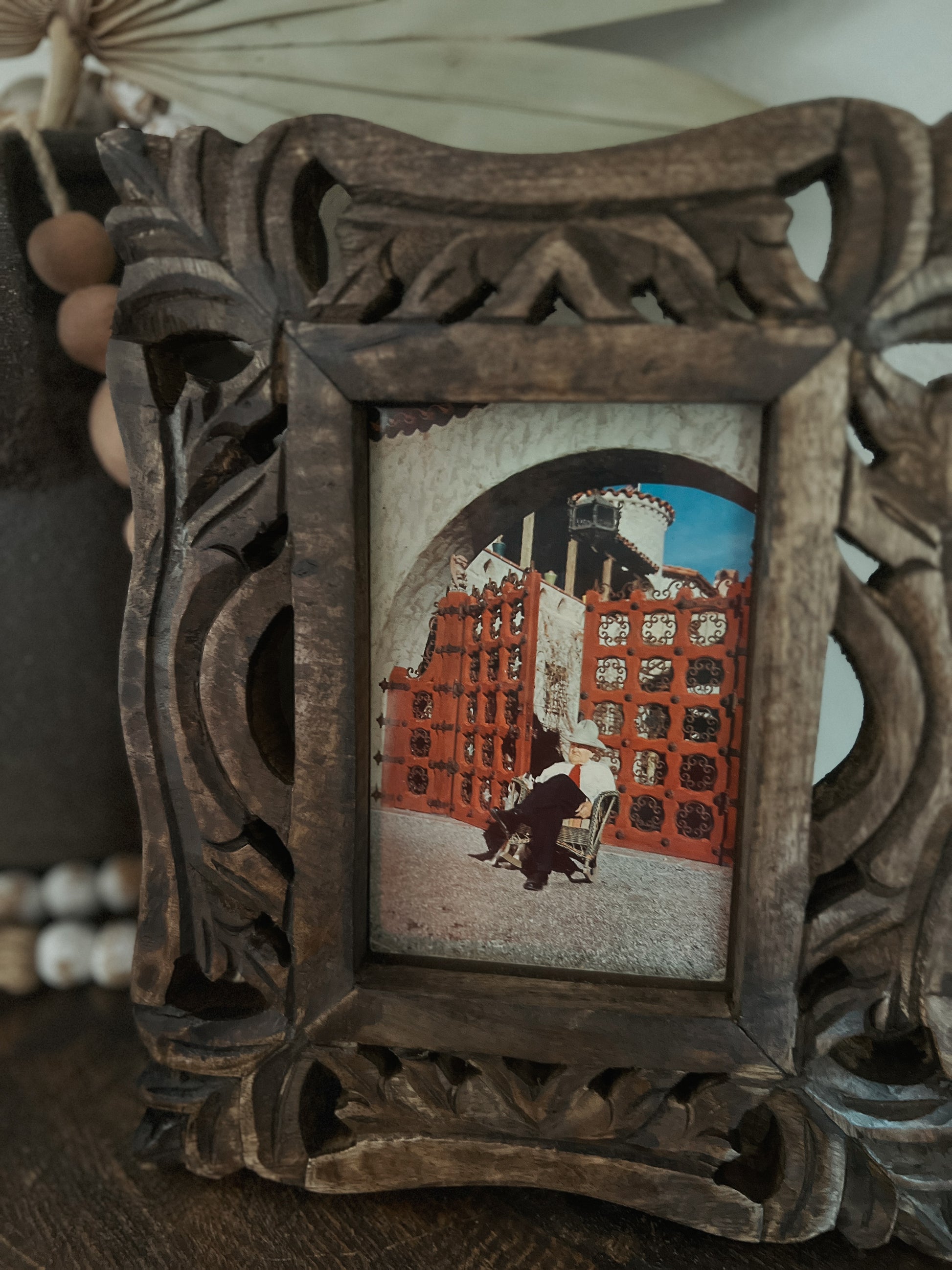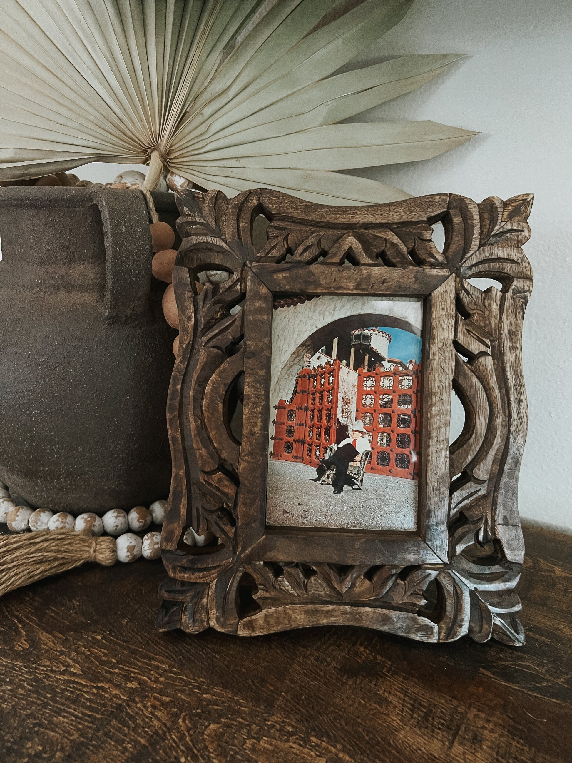 Our Chico Hand-Carved Wood Photo Frame gives a little hacienda flair to your table scape, mantle or shelving units!