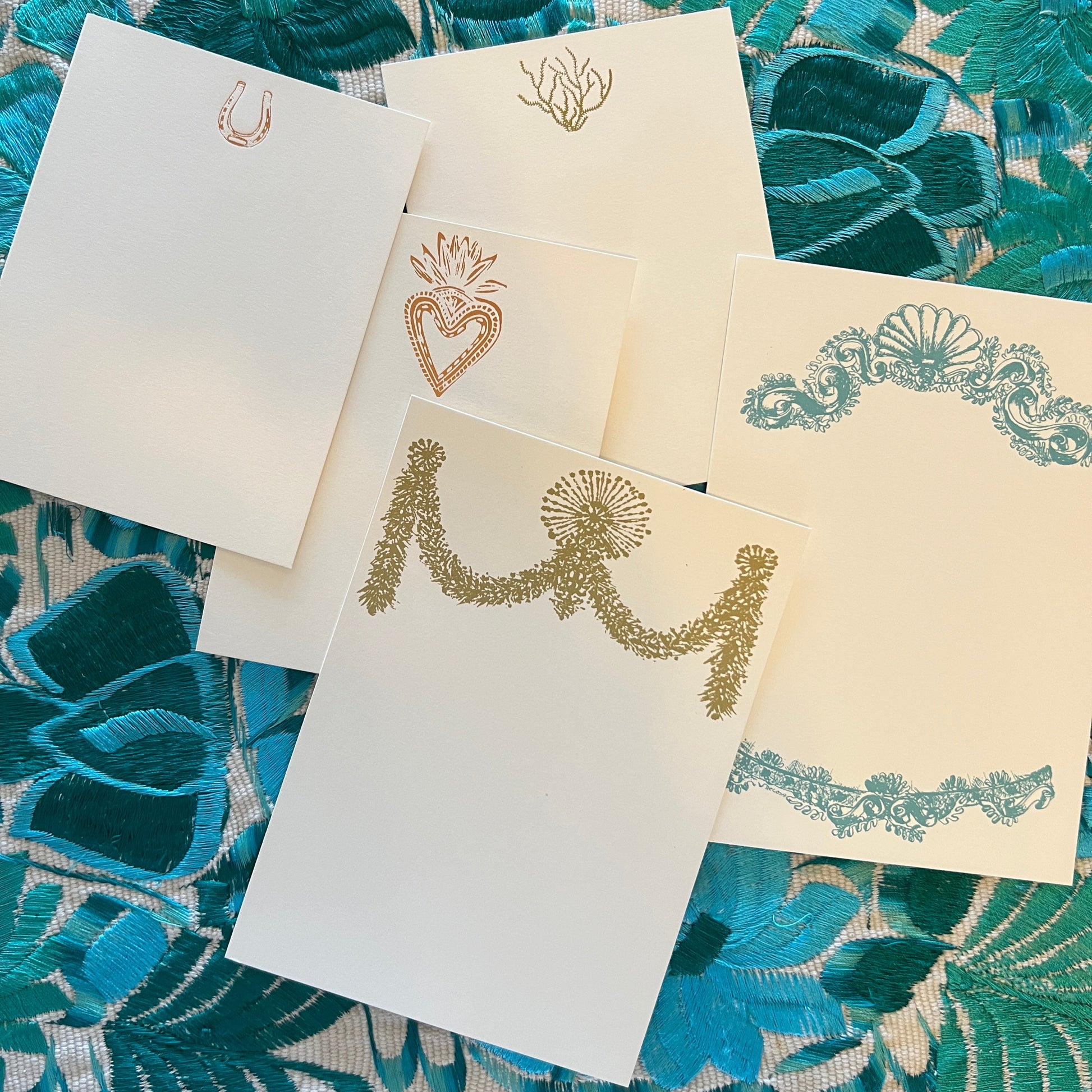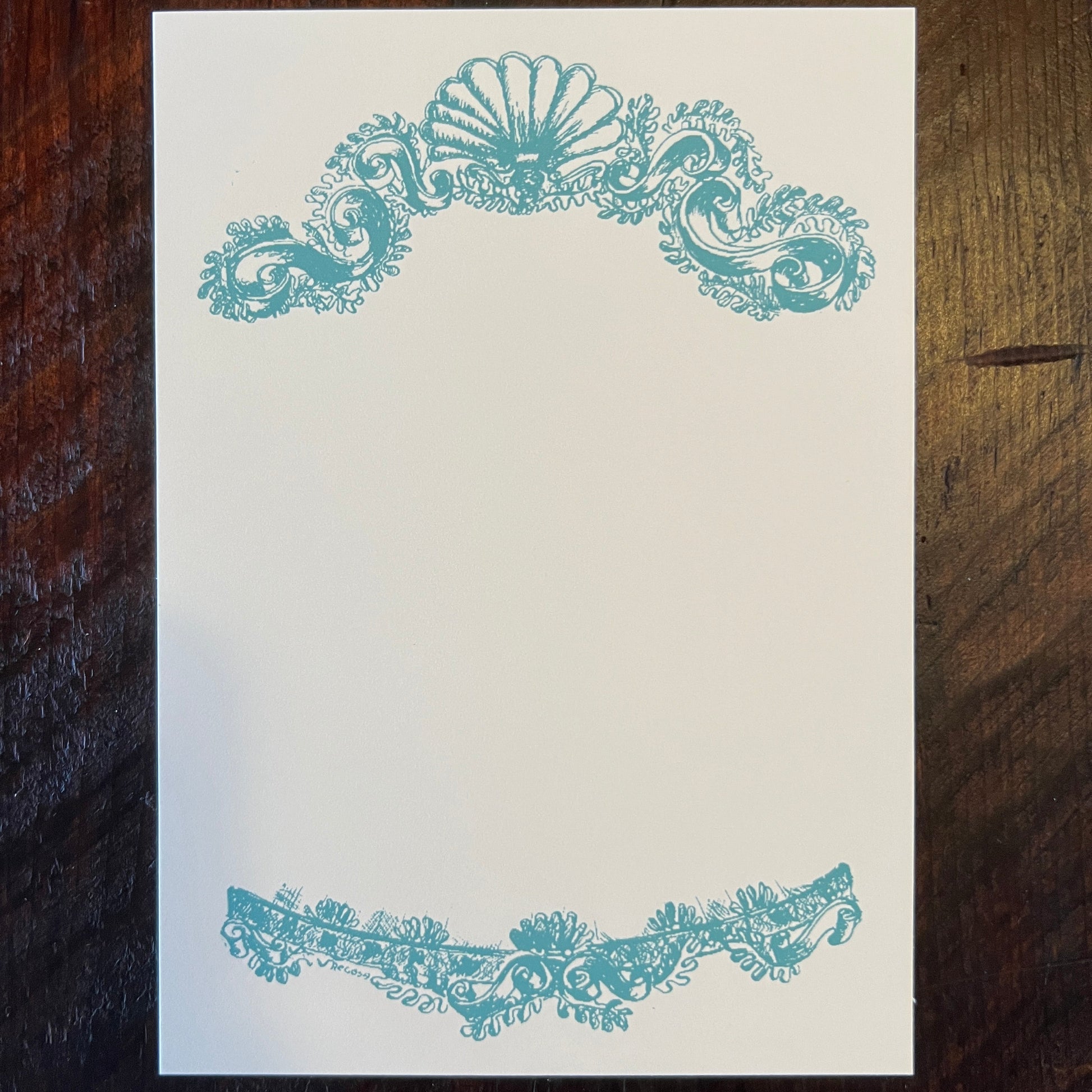 Set of 8 turquoise shell banner stationary cards printed on creamy white cardstock paper