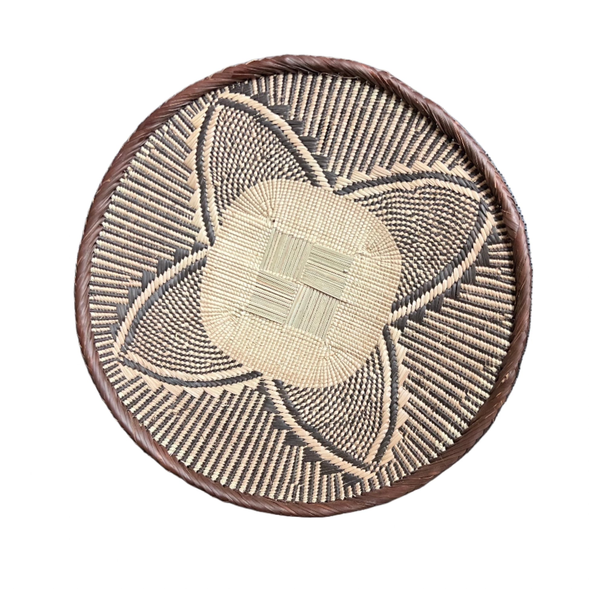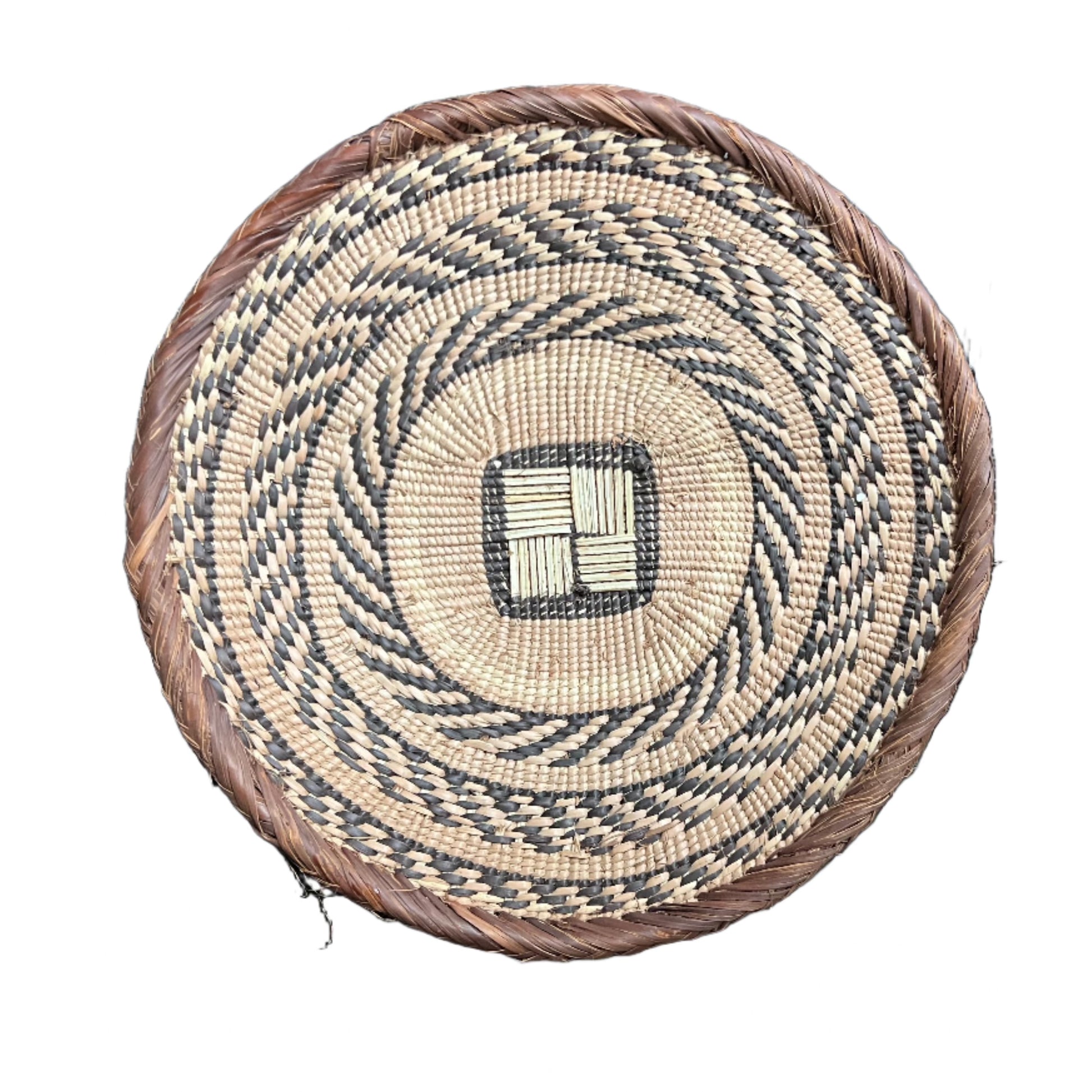 Two tone hand woven Tonga baskets, beautiful African weavings perfect for wall decor or tabletops.